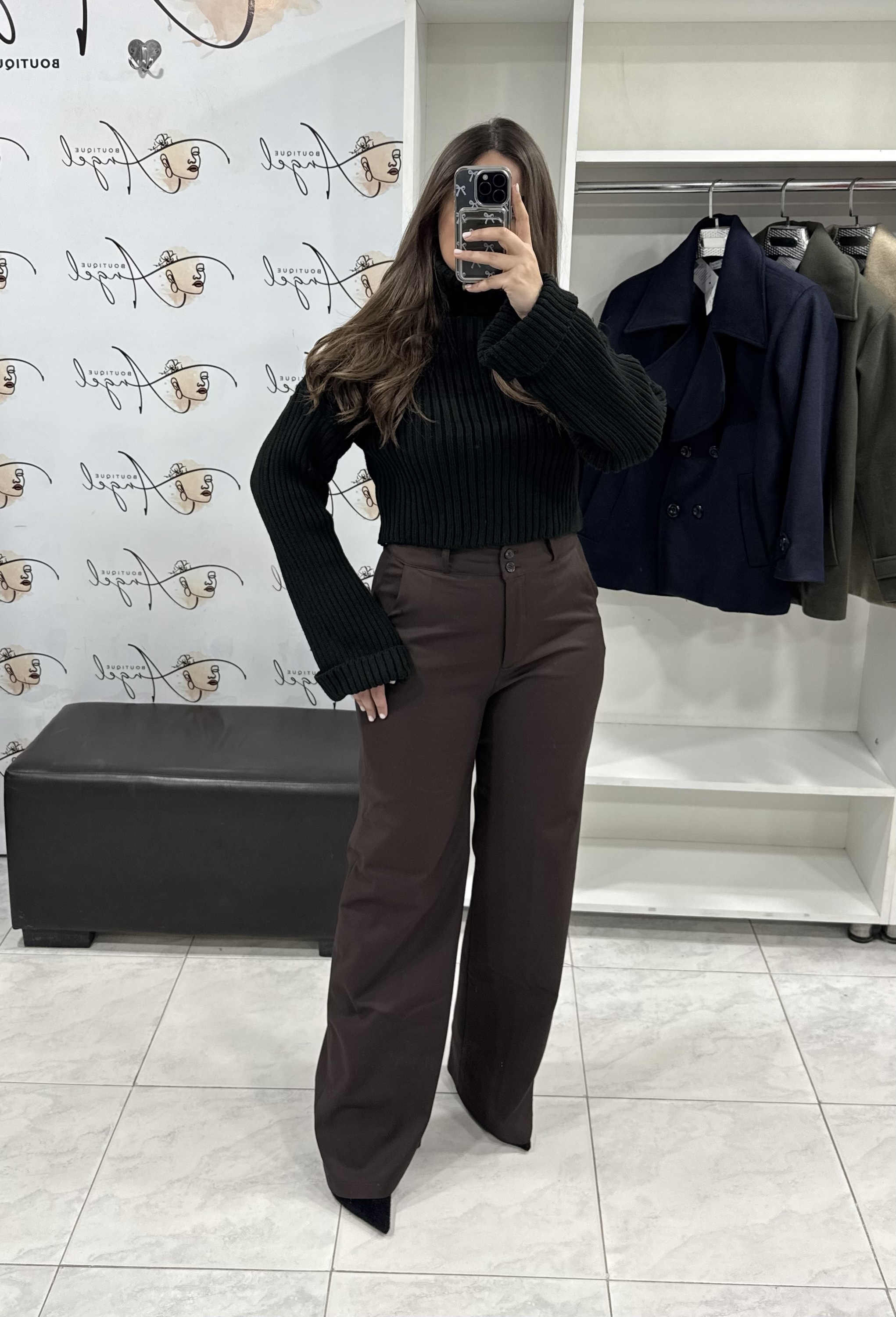 Un joli pantalon, bien découpé, taille haute, fermeture en zip et un bouton, tissu en draperie épaisse sur lycra