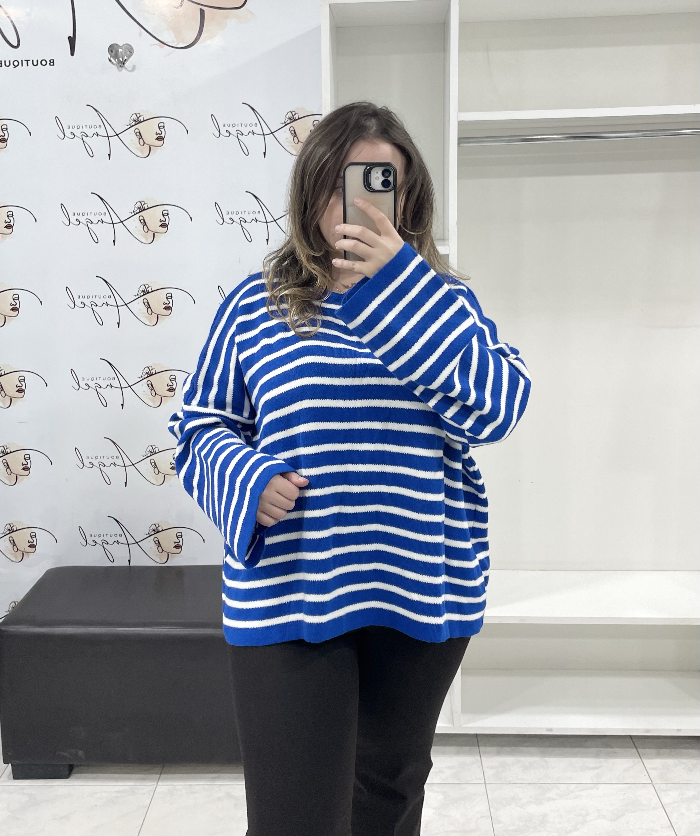 [:fr]Un joli pull a rayures bicolores, conte des manches larges, tissu en laine, taille standard[:]