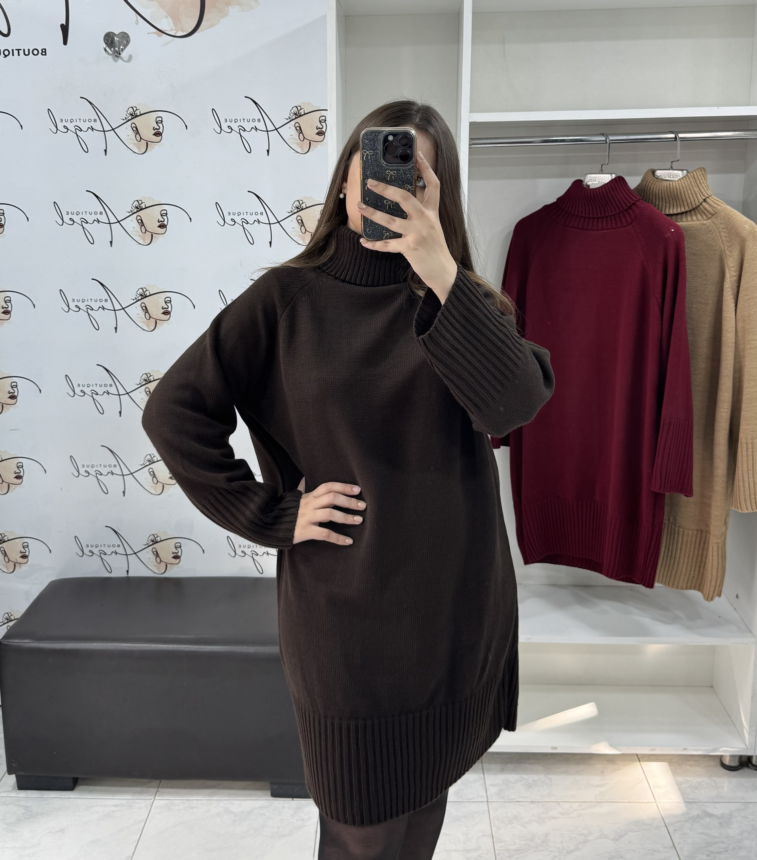 Un joli pull robe, manches longues, col roulé, tissu en excellente qualité de maille, vous pouvez le porter sur des collants et faire un style sport et chic a la fois, de taille standard