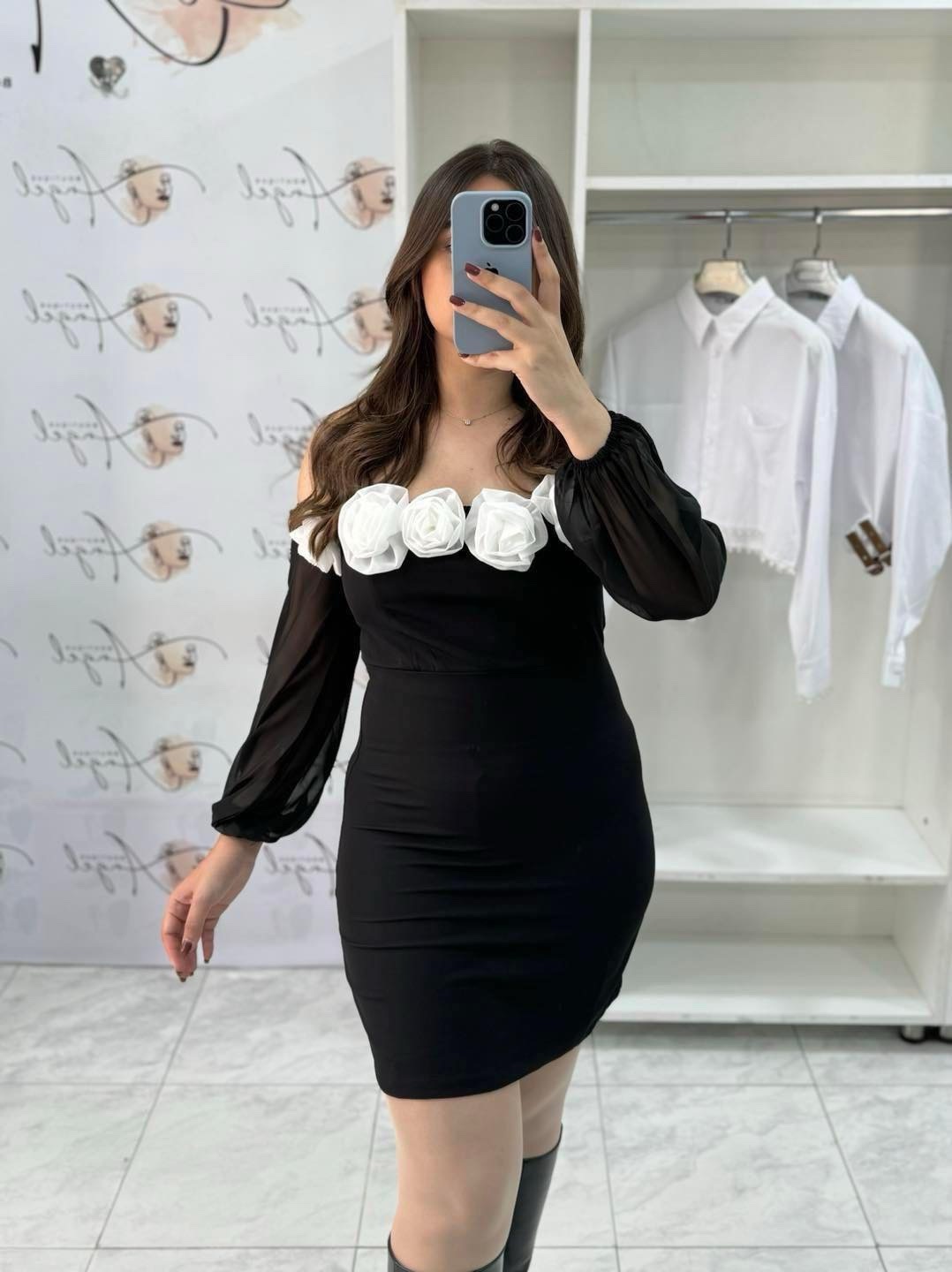 une jolie robe droite, a manches en mousseline, vous pouvez mettre les manches en bateau , le col contenant des fleurs démontables