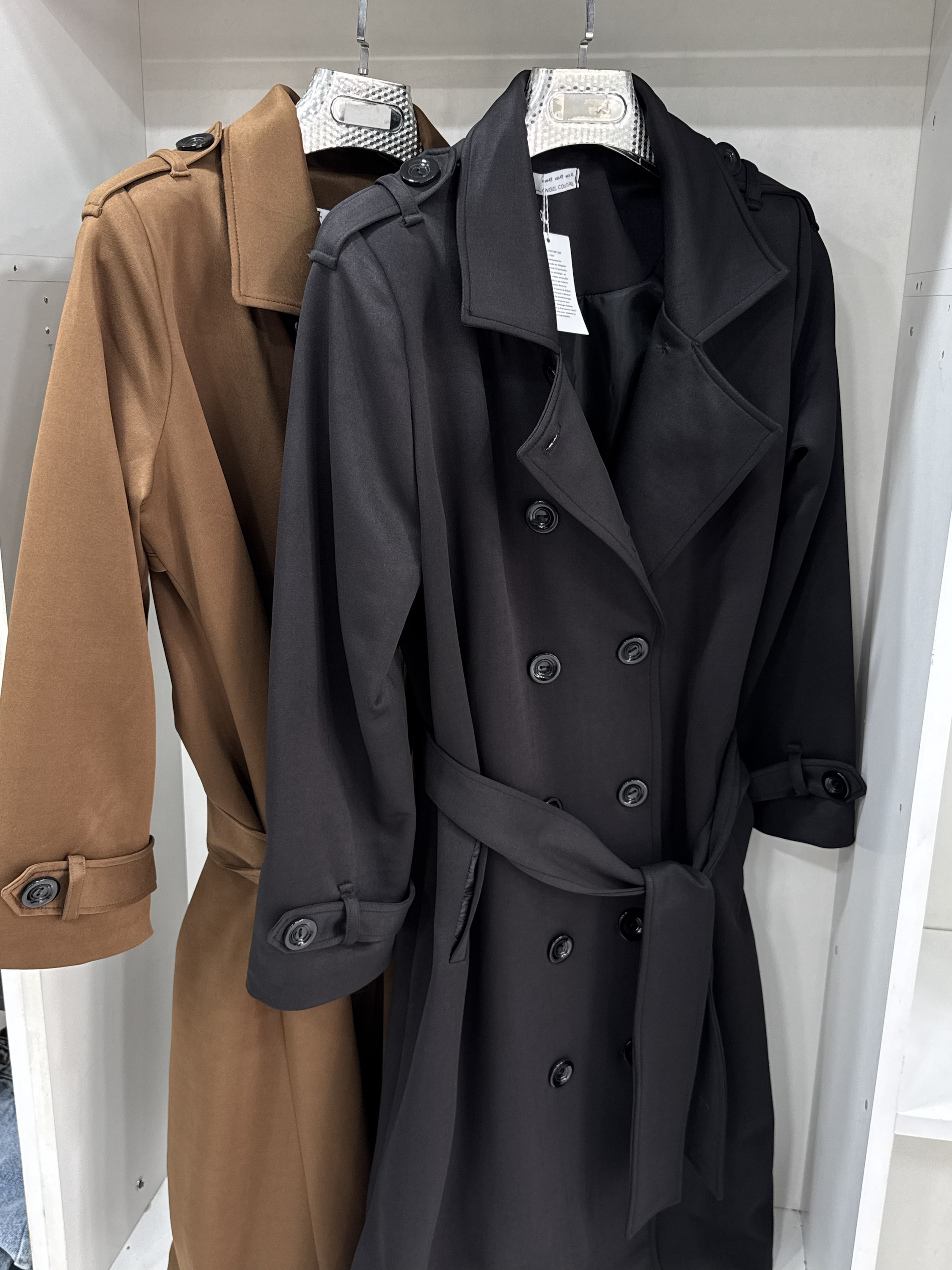 Un joli trench-coat a boutonnages croisés, manches longues, mettant votre taille en valeur, tissu en scuba sweden, coupe large, taille xxl ira jusqu’à 48